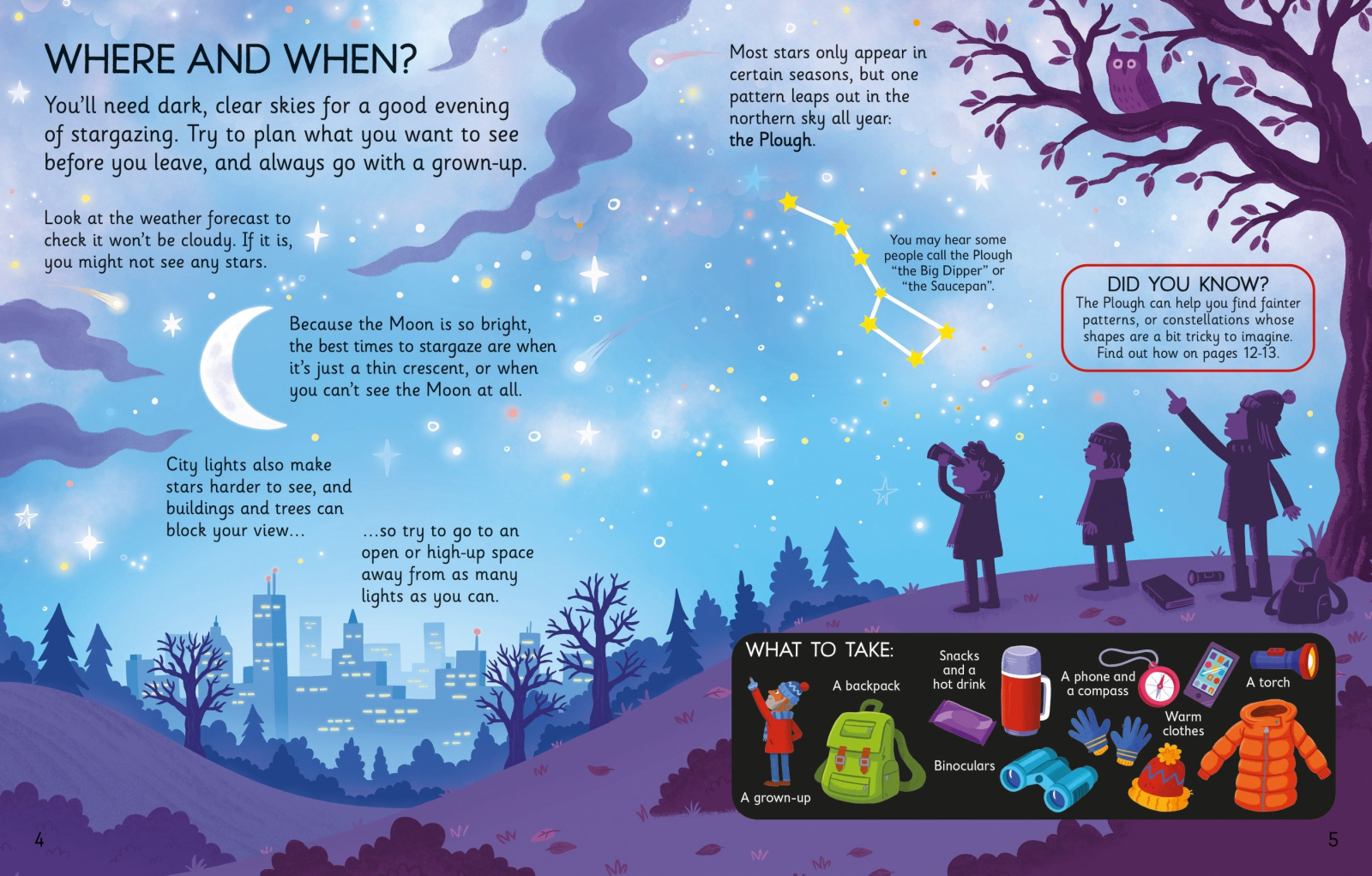 Children can discover a variety of night-sky sights with this friendly, illustrated introduction to stargazing: from constellations, to shooting stars, to the Moon and the planets. Find out all about the stars, what to look for and when, how to "star hop", and much more.